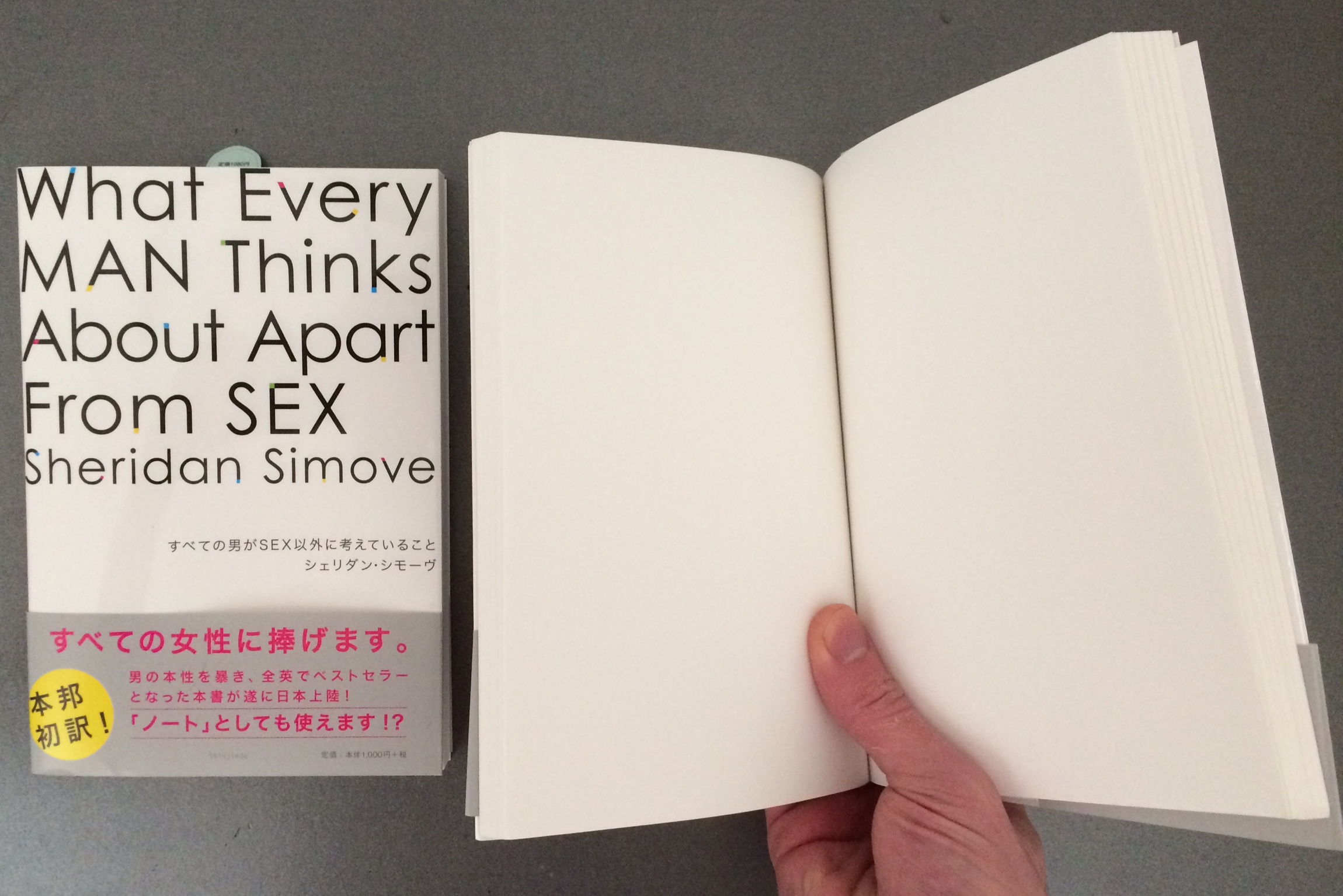 Sheridan Simove's (UK) book What Every Man Thinks About Apart From Sex...(2011) contains 196 blank pages.
