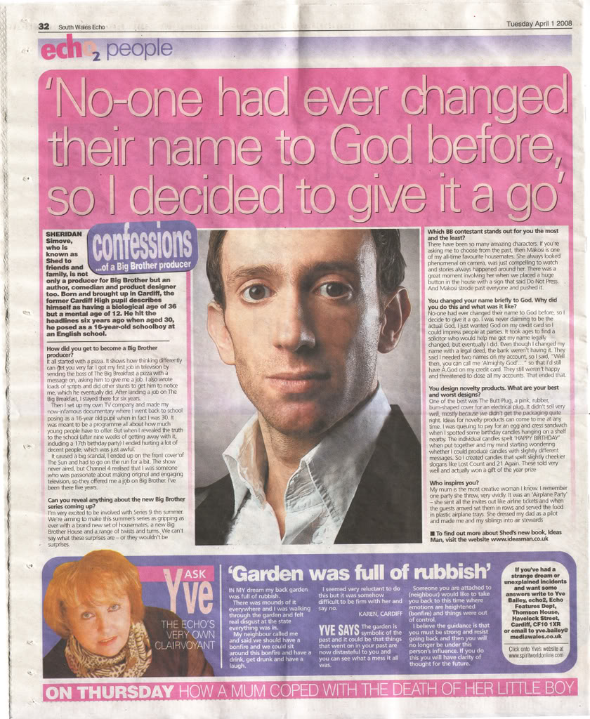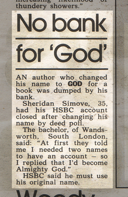 So I wondered if I could change my name to 'God'. It took a while, but eventually I did.