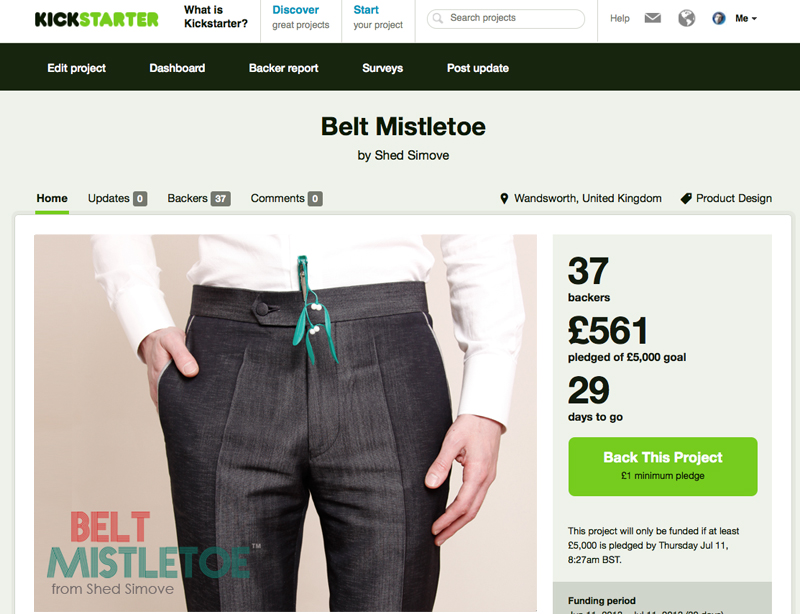 I'm very thrilled to have launched my first Kickstarter project for my Belt Mistletoe™ - you can view the Kickstarter campaign by clicking on the image below and the longer (first) version of the campaign video is also underneath: