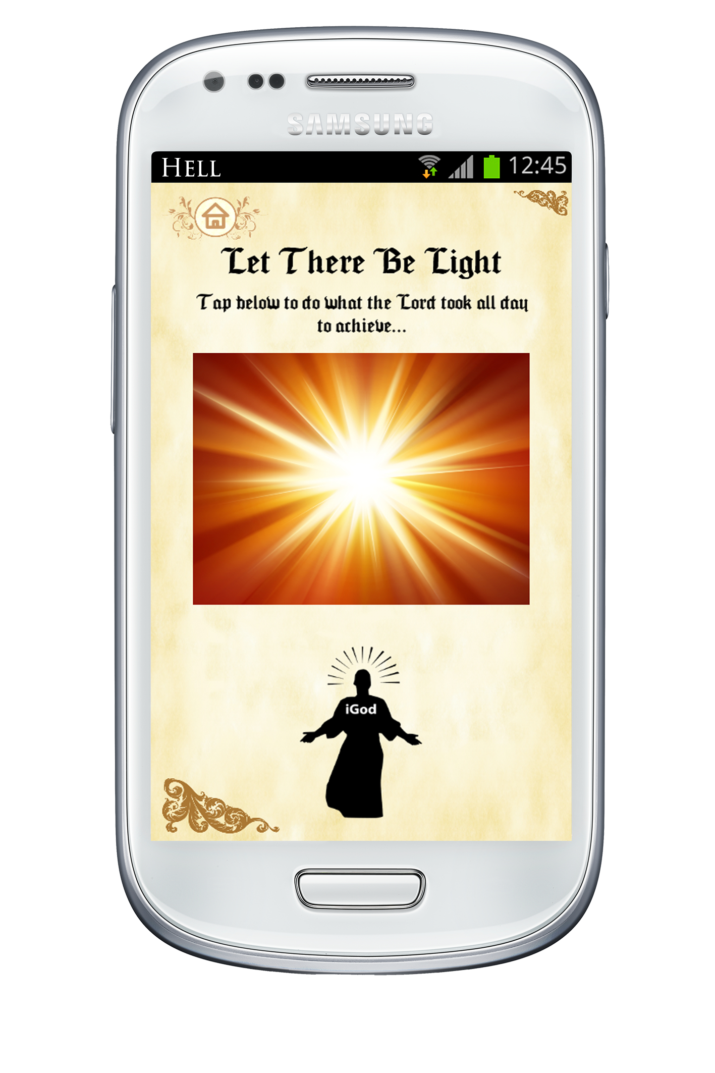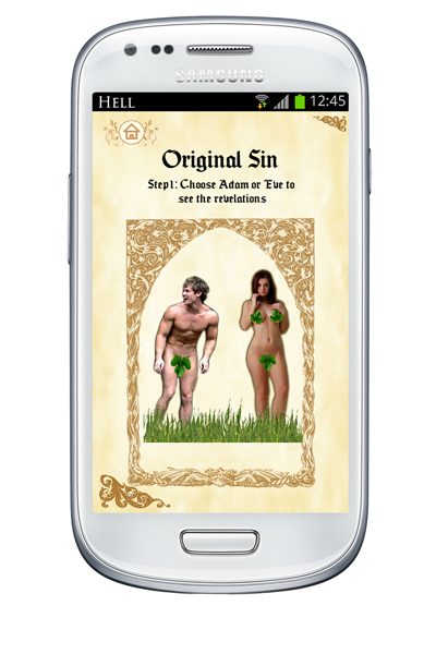 ‘Revelations’ is a new android app that aims, according to it’s creator, ‘to make the bible fun and relevant again’. The app allows the user to turn water into wine, resurrect Jesus from his cave and be like God. by creating light (which turns the torch on the phone being used). Users can also remove fig leaves from Adam and Eve after being triggered by an augmented reality function when held up to the front cover of a Gideon Bible.