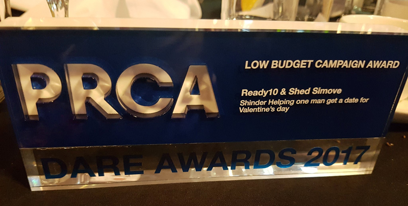 What a result! Shinder won the PRCA Dare award for Best Low Budget PR campaign.