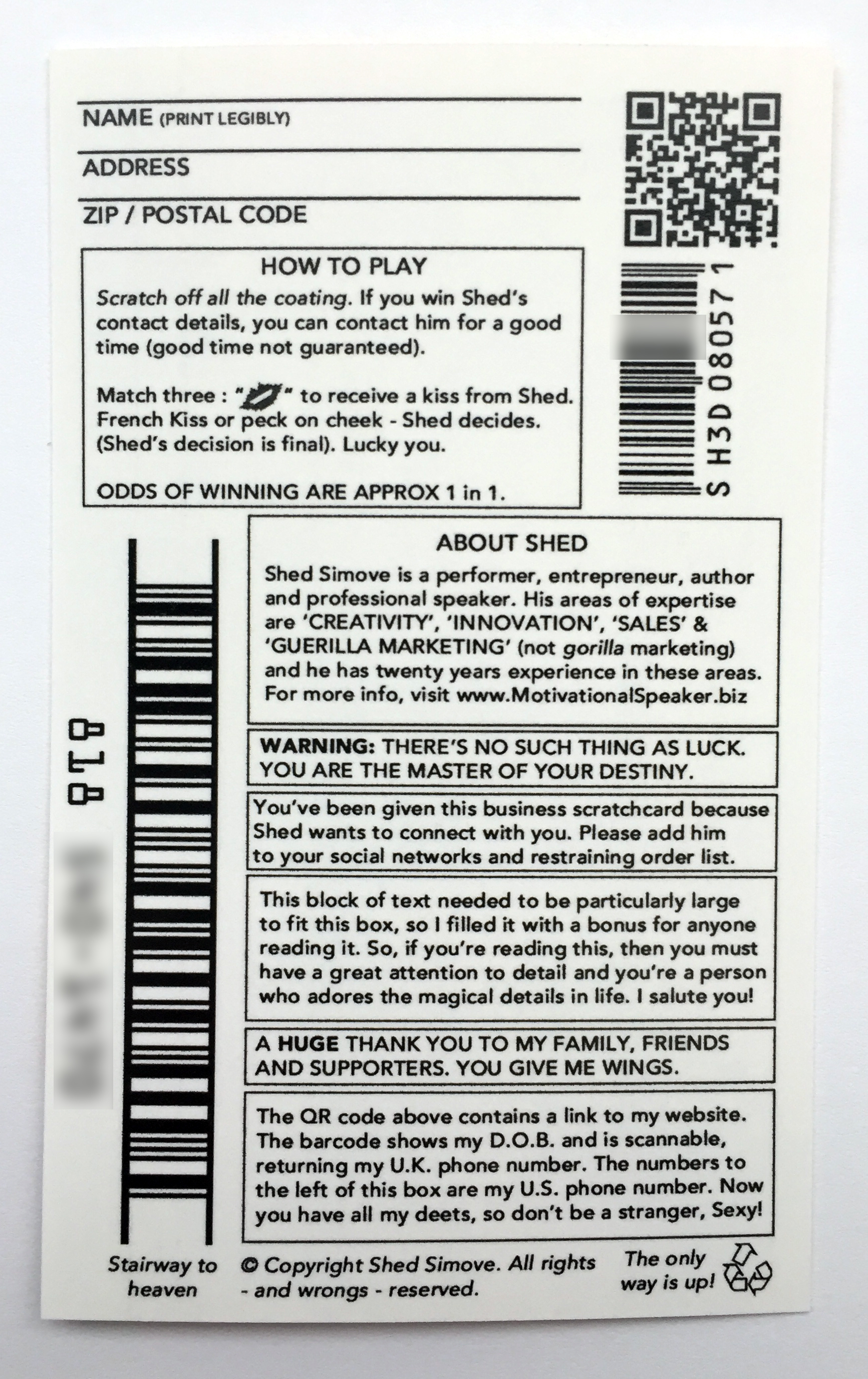 This got me thinking about the whole concept of luck and gambling and inspired me to create the 'WORLD'S FIRST BUSINESS SCRATCHCARD' - and business card where you 'win' my contact details...and something else too!
