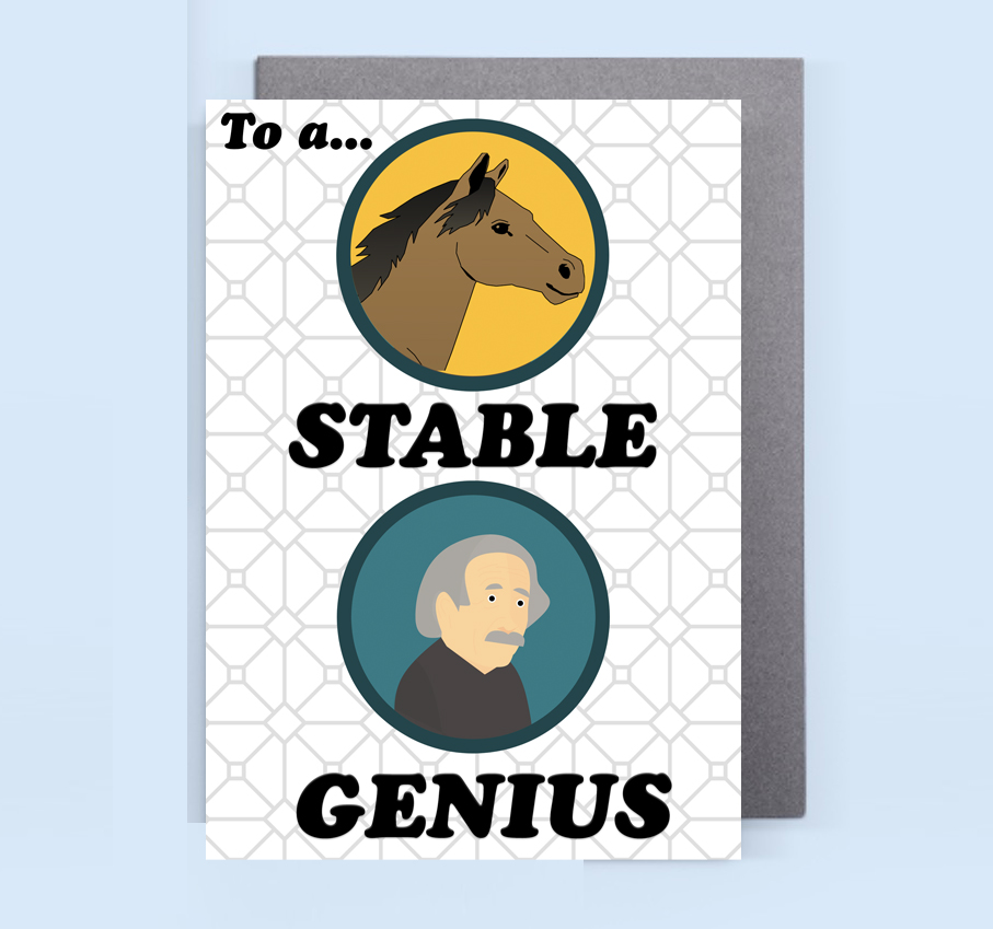 This stable genius card is perfect for any ghorse lover or stable genius.Available to buy here or by clicking on the image below. Tweet